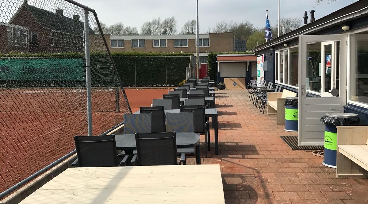 Het terras bij de kantine heeft een mooie opfrisbeurt gekregen door de aanschaf van nieuwe tafels en stoelen. De oude tafels en stoelen zijn verplaatst naar baan 3 en 4 waardoor hier betere zitgelegenheid en volwaardig terras is ontstaan. Tevens heeft Mick en zijn team de afgelopen winter de mooie steigerhouten staantafels en banken gemaakt.