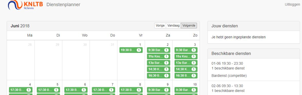 Vanaf 13 maart tot en met 30 maart 2018 heb jij de kans om je diensten in te plannen voor het aankomende tennisjaar (4 diensten). Maak hier gebruik van want na deze deadline zullen wij de niet ingevulde diensten van iedereen in gaan vullen. Maar we hebben er het volste vertrouwen in dat iedereen de diensten zelf invult.